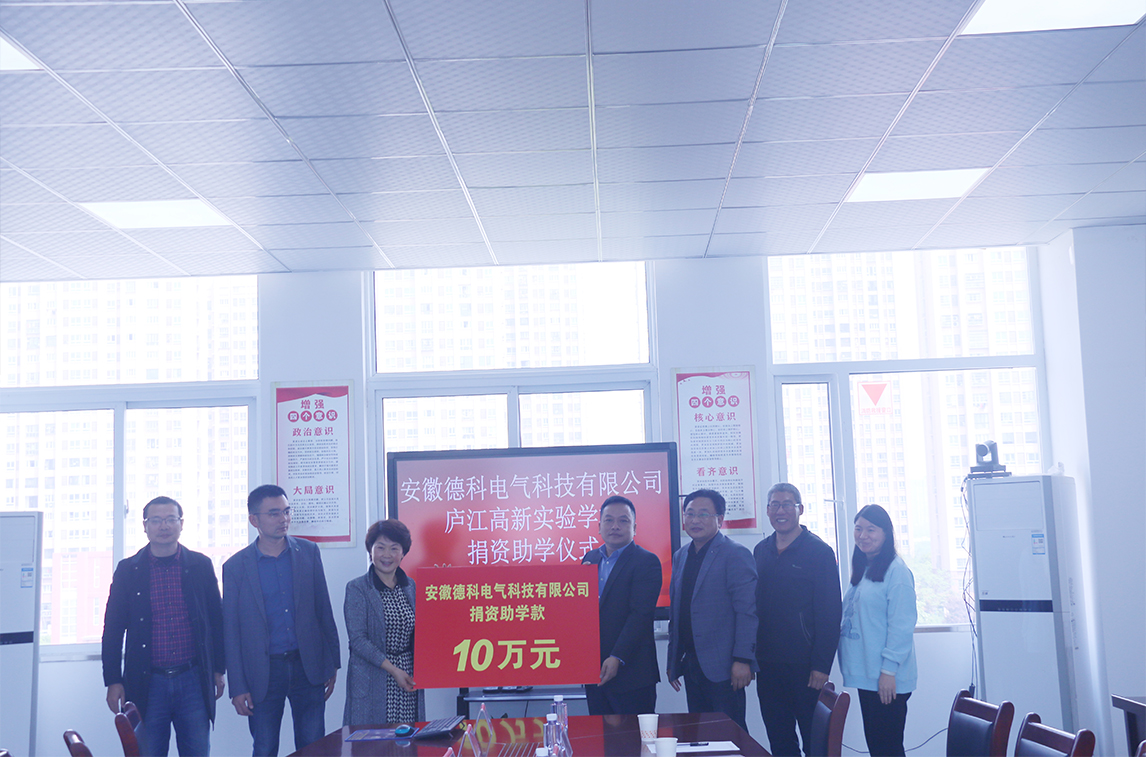 2024年4月10日安徽德科電氣科技有限公司愛心回饋社會,向廬江高新實驗學(xué)校捐贈10萬元“助學(xué)金”。這筆資金將用于改善學(xué)校的教學(xué)設(shè)施和提升教育質(zhì)量,助力更多學(xué)生實現(xiàn)夢想。